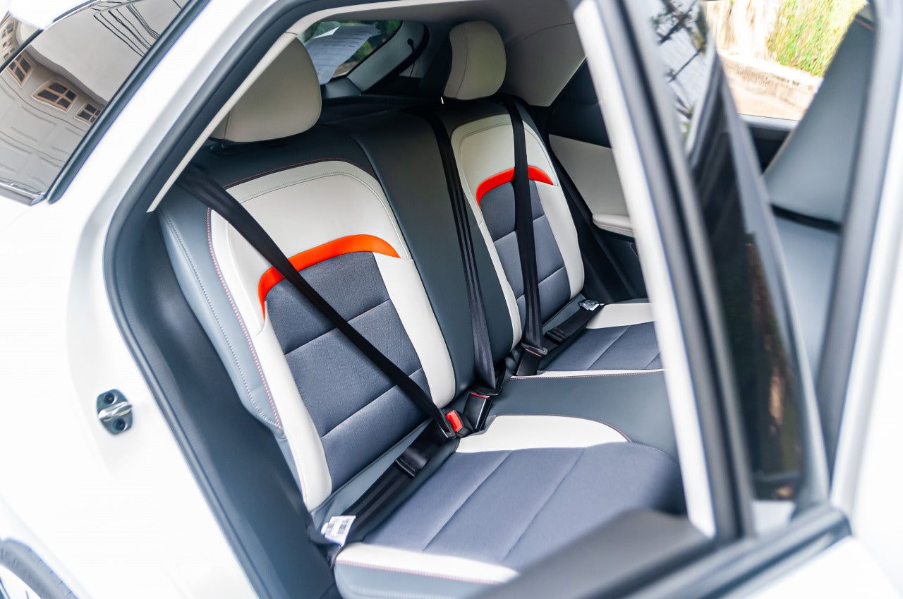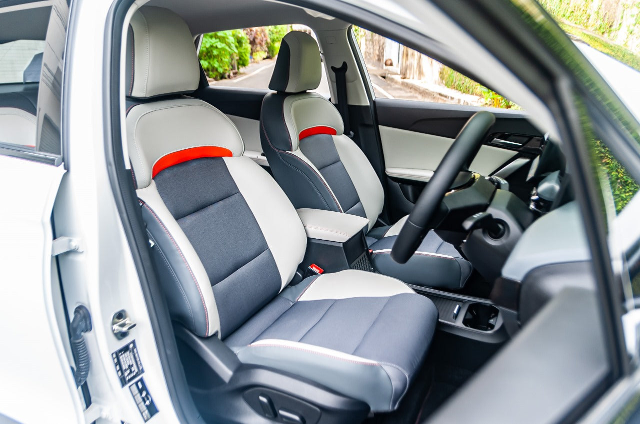 - Ivory & Black Two-Tone Leather Interior with Red Highlights